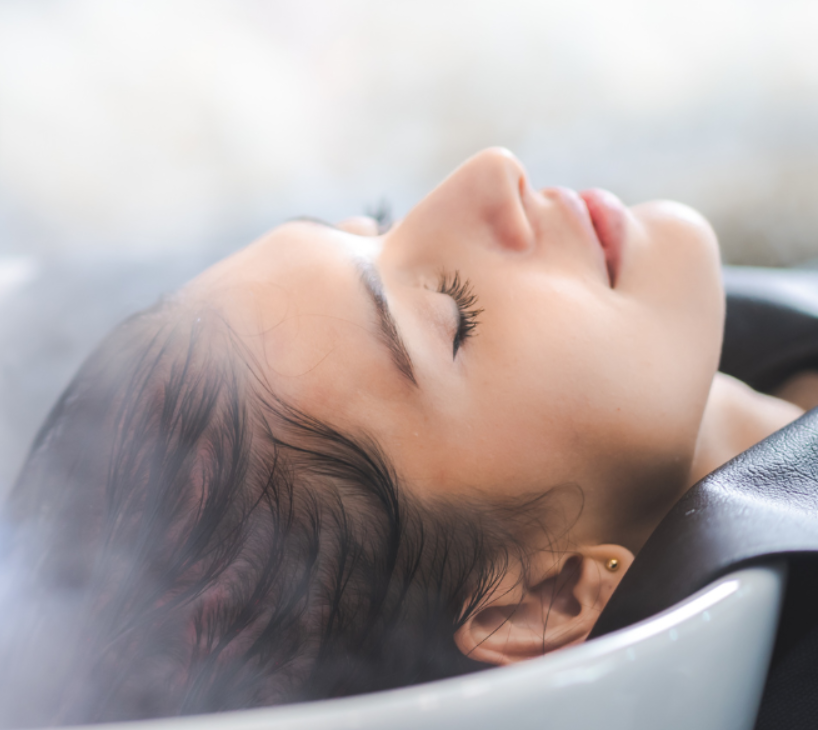 Experience allergy and head congestion relief with our Breathe and Balance Scalp Facial. This meticulously designed service is to relieve tension and promote profound relaxation. This treatment begins with a steamy menthol bomb that invigorates your senses. Choose from 3 different methol aroma therapy scents, Eucalyptus Mint, Citrus Blast or Lavendar Mint. As you breathe in to let your sinus open your stylist will seamlessly transition into a therapeutic facial massage that effectively releases sinus congestion and enhances your overall sense of well-being. After the therapuetic 20 minutes of refeshing steam and massage, we begin a nourishing scalp treatment designed to fit your scalp needs. The head spa shampoo, scalp exfoliating scrub to remove the dery dead skin from your scalp and Spa Mist to rehydrate your scalp and hair will leave you revitalized and refreshed, allowing you to unwind even further while savoring a comforting cup of tea while we blow dry your hair for the ultimate relaxation. $150
